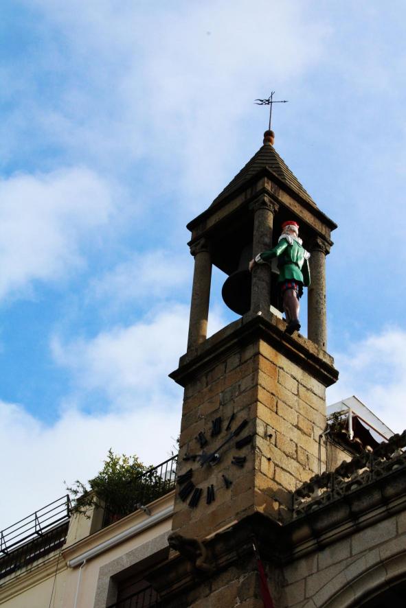 Esta curiosa figura en lo alto del ayuntamiento se ha convertido prácticamente en un símbolo de la ciudad de Plasencia. En realidad la figura que vemos hoy en día no es la original, ya que han existido distintas versiones a lo largo de la historia. Su origen no está del todo claro, aunque se cree que la primera se puso allá por el siglo XV. Entre los factores que influenciaron la decadencia, pudo haber sido relevante la expulsión de los moriscos, decretada en 1609 por Felipe III de España, que provocó la salida de Plasencia de mucha gente, que vivía sobre todo extramuros. 31​ Las guerras de los siglos XVII y XVIII también tuvieron un impacto muy negativo, principalmente la sublevación de Portugal contra el rey español, que dio origen a la Guerra de Restauración portuguesa entre 1640 y 1668, y a la Guerra de Sucesión Española entre 1702 y 1714. Durante esta última, la ciudad fue palco de luchas entre los dos pretendientes al trono español, Felipe V de España y el Archiduque de Austria que ascendería al trono austríaco como Carlos VI del Sacro Imperio Romano Germánico. La participación de Plasencia fue importante, teniendo las tropas internacionales de Carlos ocupada la ciudad en 1706. El esfuerzo exigido para atender las necesidades del ejército, como alojamiento, fornecimiento de reclutas y animales de carga, alimentación para soldados y animales, entre otras, tuvo un efecto muy negativo en la escuálida economía local.