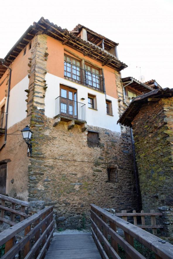 Casa junto a la pasarela sobre el río,