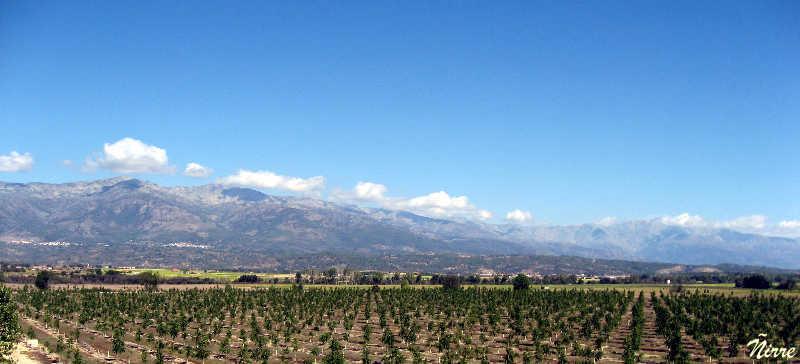 Plantaciones con sierra al fondo,