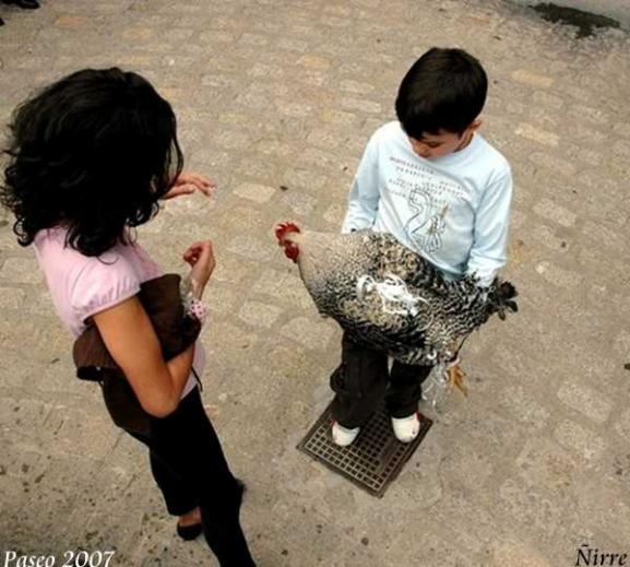 Un niño ofrece un gallo a la Virgen del Rosario,