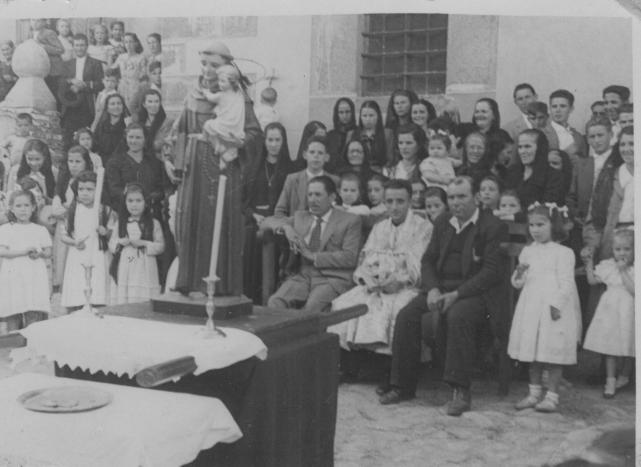 Creo haber reconocido en esa foto a mi tia Nicolasa, la madre de Marcialin, que tiene una medalla y esta al lado del santo, a la otra parte esta la hija de tia severiana que creo que esta en Madrigal, justo detras de don pablo esta Carmen la hermana de Toñi y Serafina.