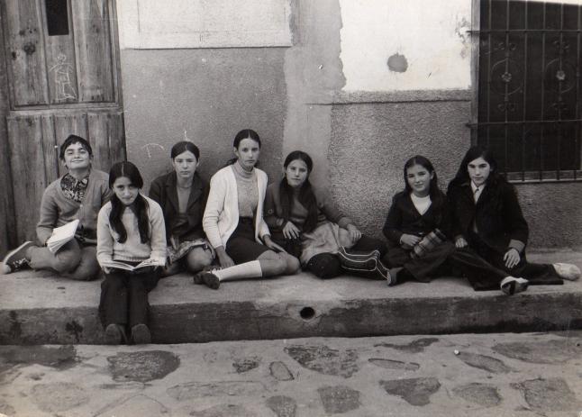 Empezando por la izquierda, Benedicto, Flory, Almudena "Colorá", Chari, Marisol, yo y Pepi la de Anastasio. Estamos en Viandar en la parte de atrás de la