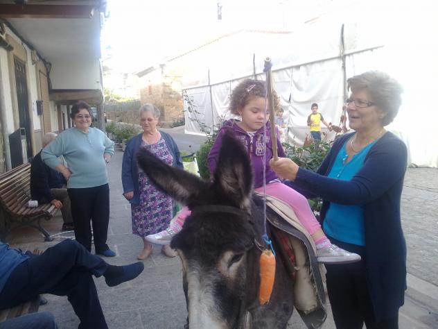 Aquí están mis dos tias Teo y Benita, y Cristina en la burrita de mi padre, no veais cantares se echa la tia sobre todo de madrugada. Se llama Luna y a Daniel le encanta subirse y que lo demos un paseo encima de la luna como dice él.