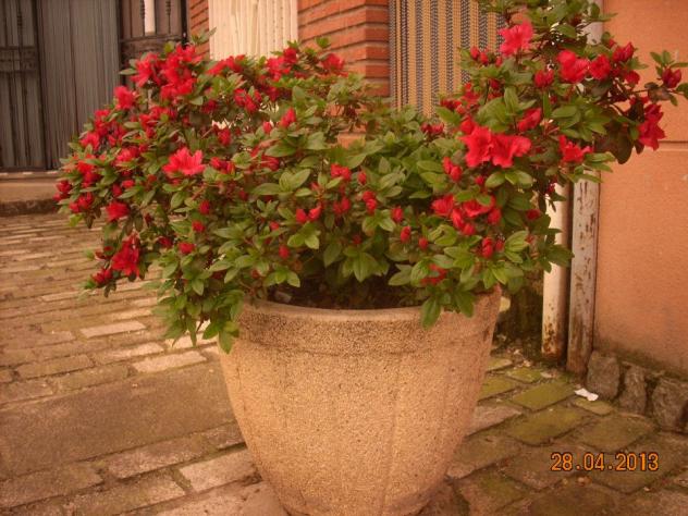 una hermosa maceta de flores en la calle,