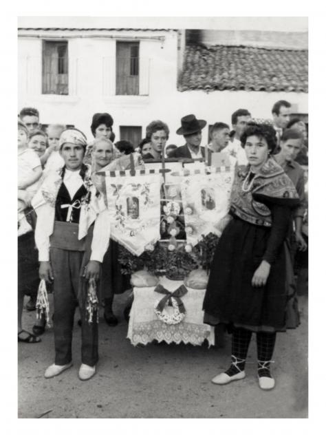 Saludos. Pues ya veo que habeis conocido, algunas persons, pues yo he reconocido al señor del sombrero, es (tio portelas), una pena no recuerdo el nombre, y el danzador es mi cuñado Francisco. PAQUI:- La tablera es mi prima Valentina, hija de mi tia Gregoria (justo detras de ella, la que asoma la cabeza) era hermana de mi madre, tambien hija de mi abuela Valentina, sí está a la derecha de mi madre, derás del Danzador.