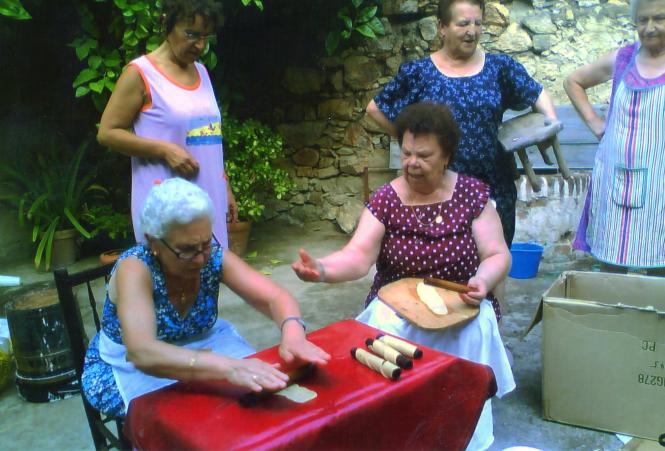 Martina y Teresa, elaborando los pestiños
