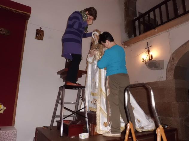 vistiendo a la Virgen para procesión,