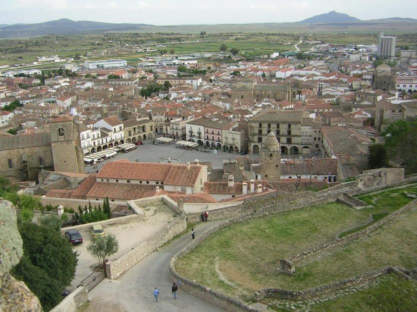 Vista aerea de la Plaza Mayor desde el Castillo, TRUJILLO