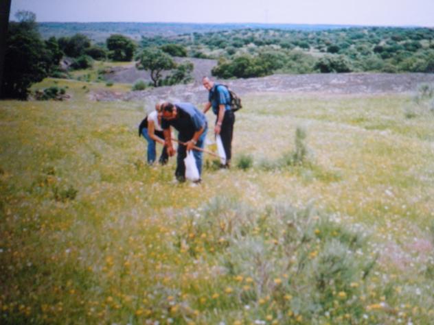 buscando trufas en la dehesa del pueblo,