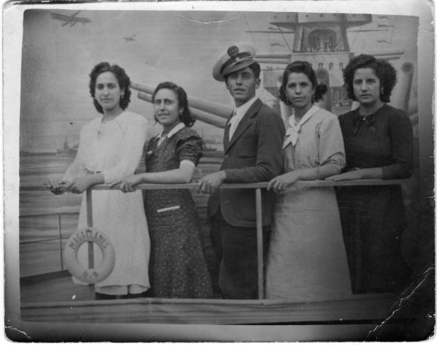 Allá por principios de la década de 1940, cuatro guapas y apolíneas “mocitas” y un “mocito” de Villanueva, durante la festividad de la “