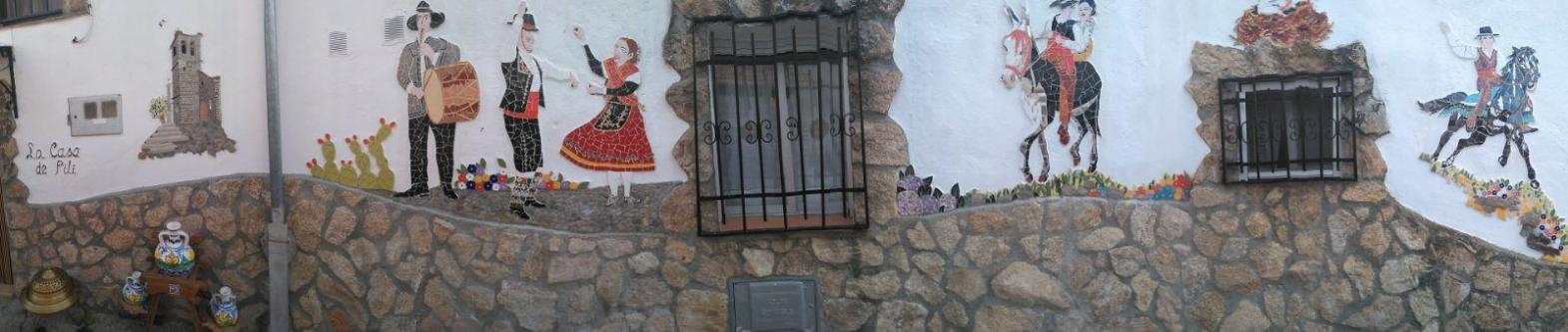 Decoración con temas regionales en la fachada de La Casa de Pili,