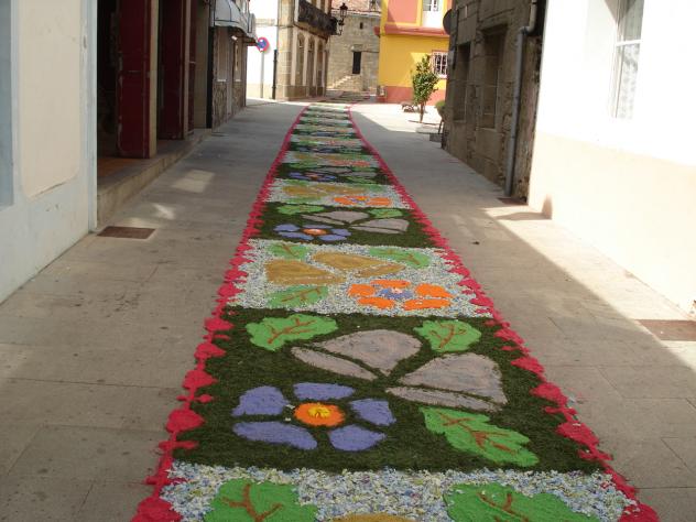 Alfombras de sal tintada y flores,