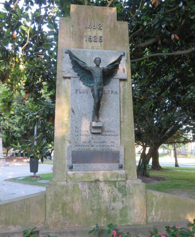 escultura en conmemoración del vuelo Plus Ultra, que pese a su mal estado aún se mantiene en pie en el Cantón de Molíns.