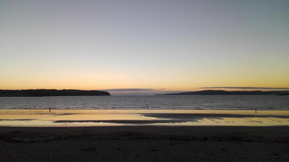 Anochecer en la playa,