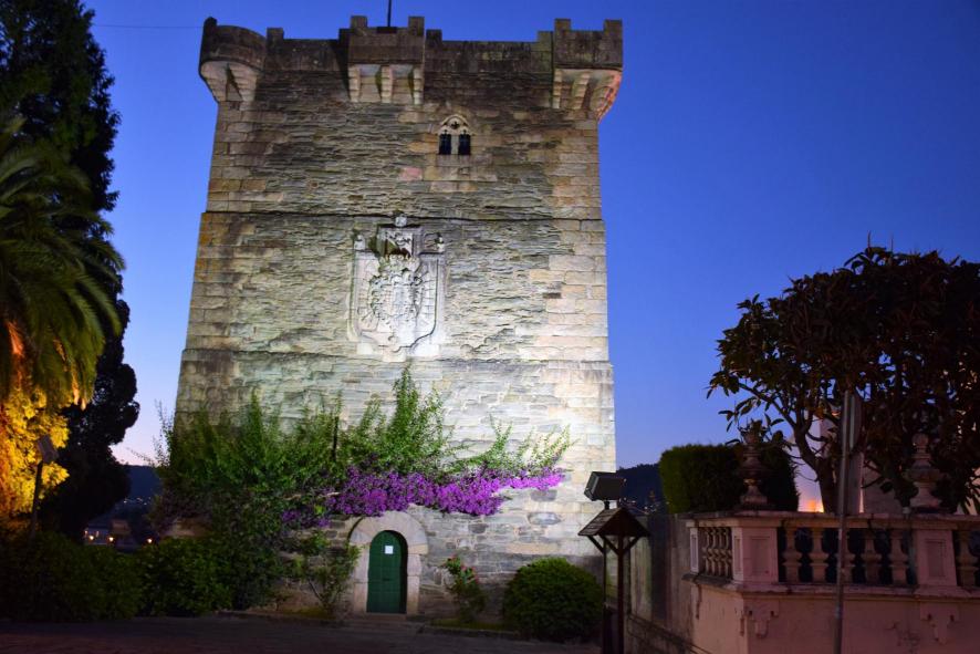 Del antiguo palacio de los condes de Andrade, construido en la segunda mitad del siglo XIV, solo queda la torre del homenaje. La torre es de planta cuadrada y está coronado por almenas. Consta de cuatro pisos con hermosos vanos de estilo ojival. Mide 11,5 metros de lado y 18 metros de altura, y el grosor de sus muros es de más de 2 metros.