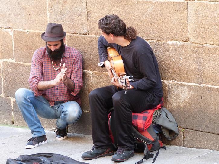 de las Platerías non sorprende esta pareja de guitarrista y cantante de flamenco.