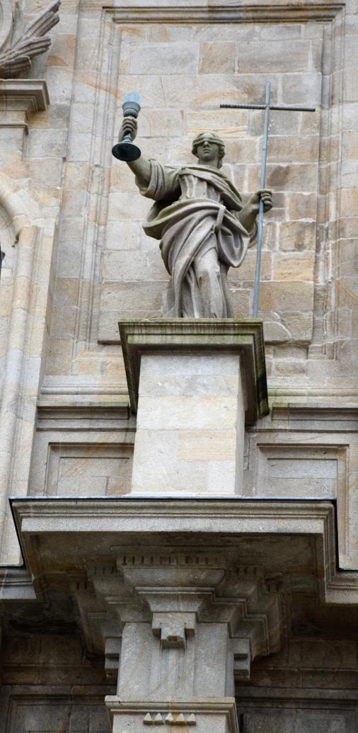 Representación de la Fe en la fachada de la Catedral a la Plaza de la Azabachría,