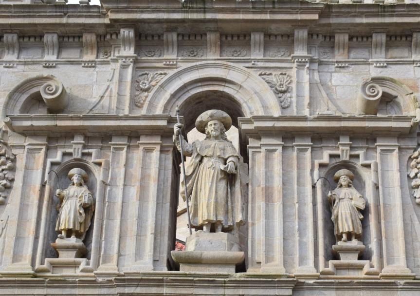 Santiago Peregrino en el centro de Atanasio y Teodoro. Puerta Santa de la Catedral,