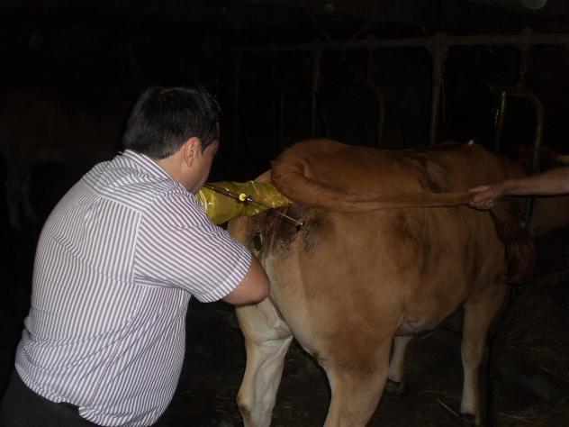 veterinario inseminando una vaca,