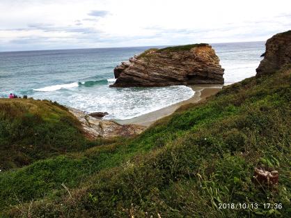 "Vista de un peñote en la playa de Las Catedrales desde el mirador" y más...