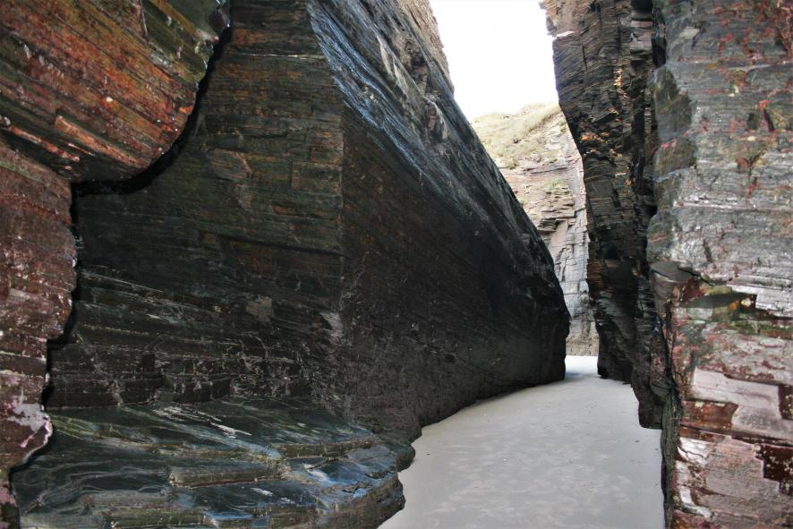 El monumento natural de la playa de las Catedrales se ha terminado convirtiendo, como tantas cosas en este País, en un parque temática; sólo aquellos que pueden permitirse visitarlo en otra época que no sea el estío, podrán disfrutar del paisaje natural, del sonido de las olas al entrar y salir de sus grutas, de los pasadizos solitarios con paredes inaccesibles.