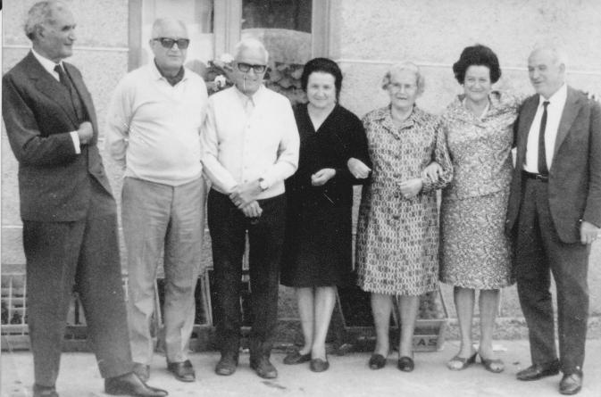De izquierda a derecha: mi tío Alberto, tío Ignacio, tío Eloy, mi madre Celsa, tía Visitación, tía Pepita y tío Santiago, todos en Brasil excepto mi madre, tío Alberto y tía Pepita. Foto hecha en su viaje por España.