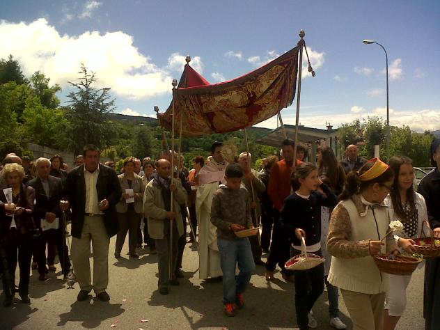 procesión en la carretera el día del Corpus,