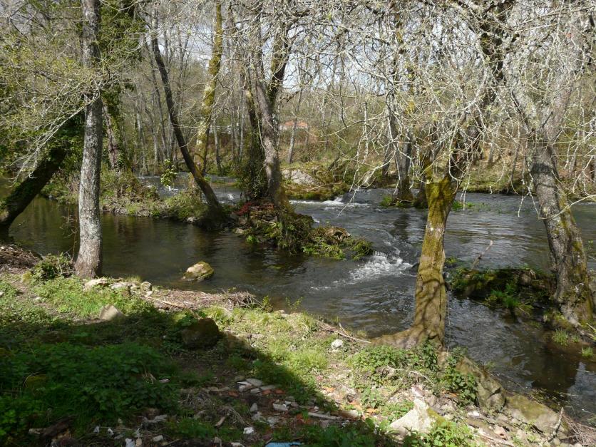Puente peatonal de madra sobre el río Arnoia,