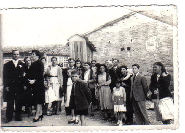 Bernardino el novio, Maria Rodicio la madrina, entre ellos, la mujer deAntonio O cachon, Marina do choto, con su hija Marisol, Julio hijo de Generosa do Rio, Maruja hija de Manuela do Rio, Mercedes esposa de Julio hija de tia Francisca, Guillermo do Rio o marido de Isaura, Manuela do Rio madre Maruja, Alicia do Avelino, La Madre de otilio con su nieta y supongo su nieto ambos hijos de Otilio, Julio do Maranas, Camila do Rio Madre de Antonio, al fondo Antonio mi padre, Arjemiro mi... Hola Francisco.