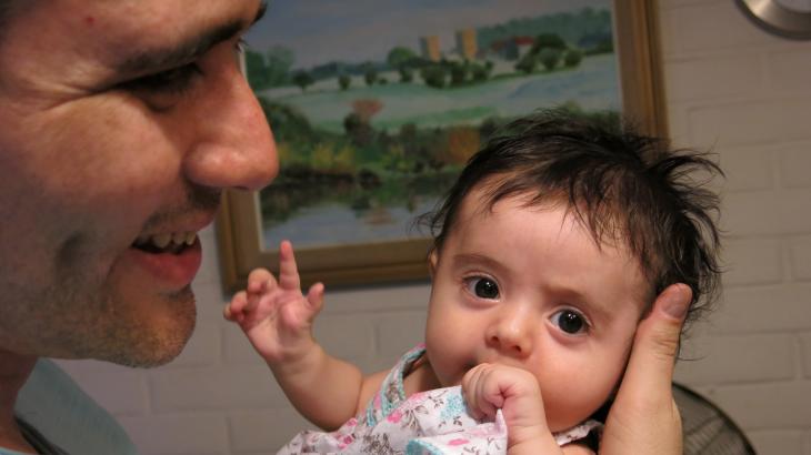 Para Rebequita los pañales; para el abuelo los baberos; gracias Señor... Un abrazo para ti y familia y a todos los foreros. ¡Bienvenida a esta descendiente de Chaguazoso! Qué preciosidad de bebita, no me extraña que revientes de orgullo y que necesites de muchos baberos, es lindísima. Dan unas ganas de cogerla y achucharla... No hay más que ver cómo la mira embelesado su padre, lleno de amor... Que la disfrutes muchos años con salud.