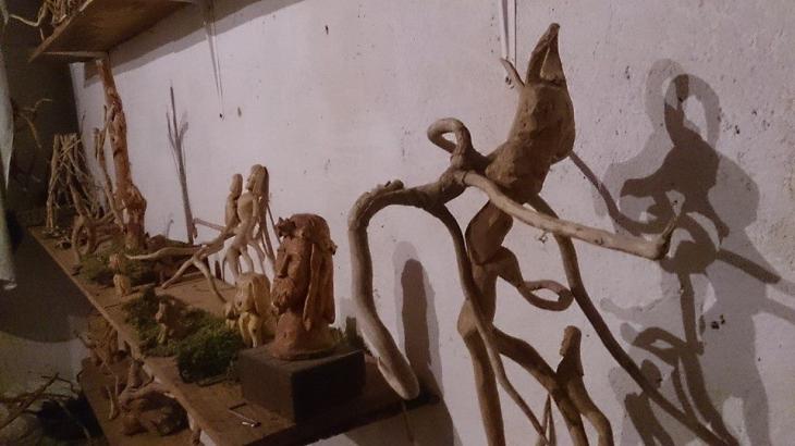 Tallas hechas a mano de troncos que Nieves encuentra cuando esta pastoreando sus
