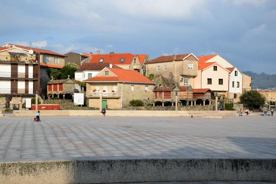 Casas y hórreos junto a la plaza de piedra,