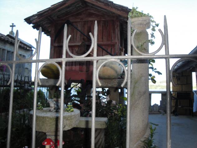 detrás de la verja un hórreo,
