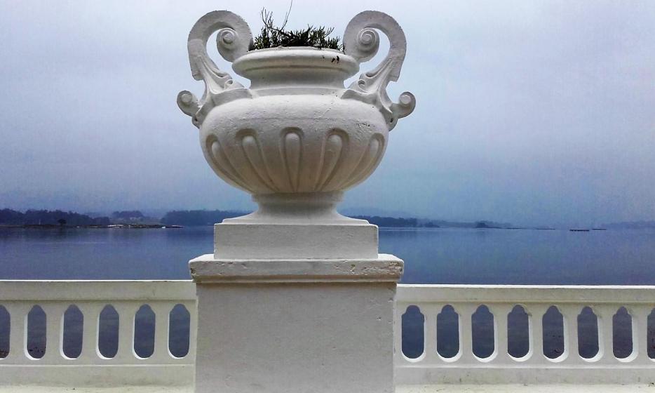 Jarrón en la balaustrada en la Toja,