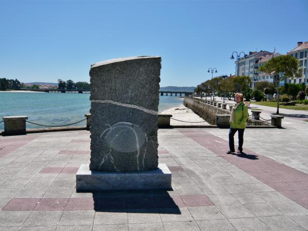 escultura y al fondo el puente de la toja,