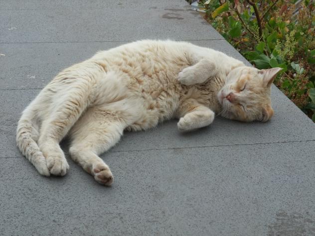 Simpático gato dormiendo al sol,