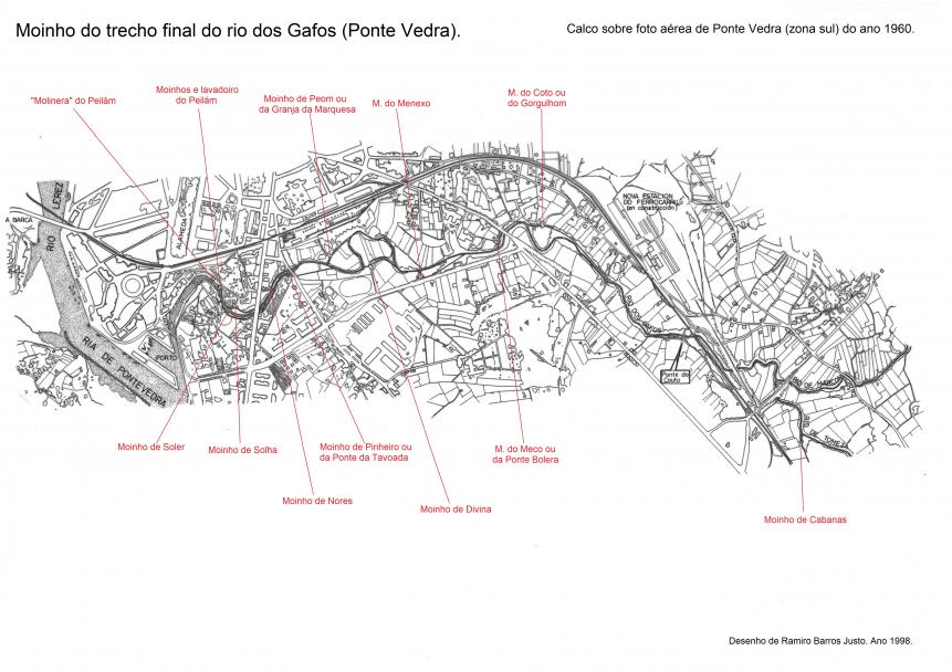 Localização dos moinhos do trecho final do rio dos Gafos,
