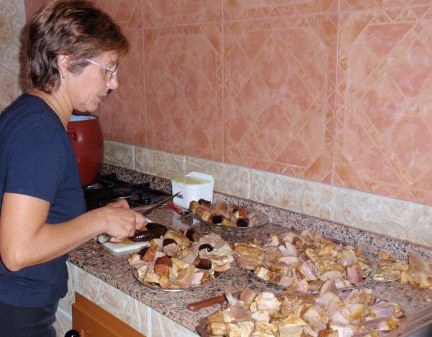Carmen cortando el Cocido,