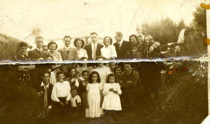 campo, benjamín meixoeiro, angelina de ubaldina, outro de meixoeiro, pilara de ubaldina, evaristo da tellada, maria do cancelo, antonio da reina. fila dianteira: do cancelo (vidal escudeiro), fillos de ignacio meijide, carme das cancelas