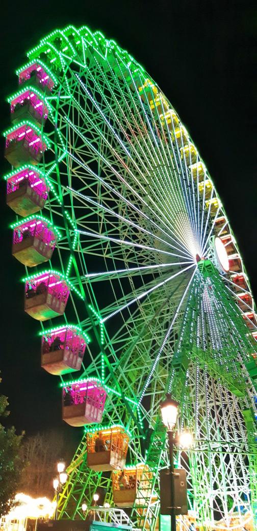 calles Colón y Areal. Presume de casi 60 metros de altura, tiene 48 cestas y este año se abre con una capacidad para casi 200 personas.
