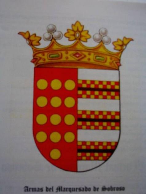 Escudo oficial del primer Marques de Sobroso, territorio originario de este antiguo marquesado, en la localidad de Vilasobroso, donde esta ubicada la antiquisima fortaleza medieval del Siglo XI Castillo de Sobroso, en esta histórica Villa de su nombre.