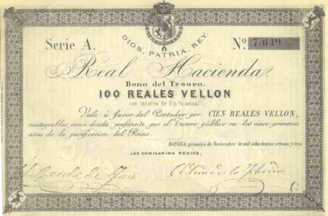 SALUDOS. Este cuadro al natural es todavía más impresionante. Acción carlista por valor de 100 reales de vellón, emitida en Bayona 1º Nov. De 1873. Chapas de boinas carlistas.