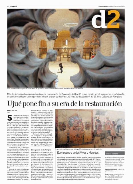 A tenor de la visita que el día 24 de marzo efectuo a las obras del santuario de Ujué y una vez introducidas las correcciones oportunas la web del Gobierno de Navarra dice lo siguiente: