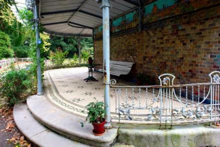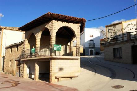 Fuente y porticos