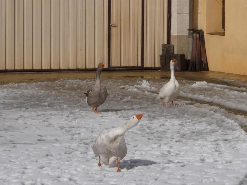 Las ocas defendiendo la casa,
