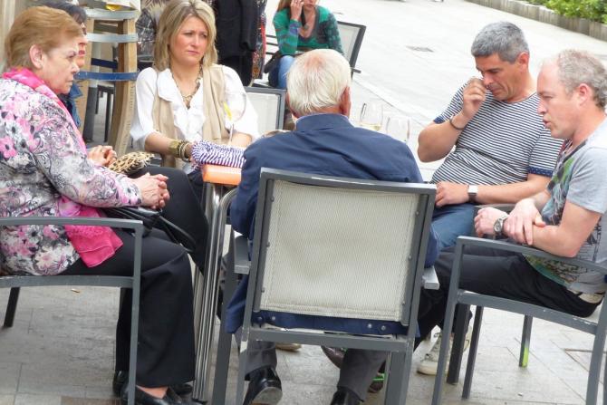 Una familia en la puerta de un bar,