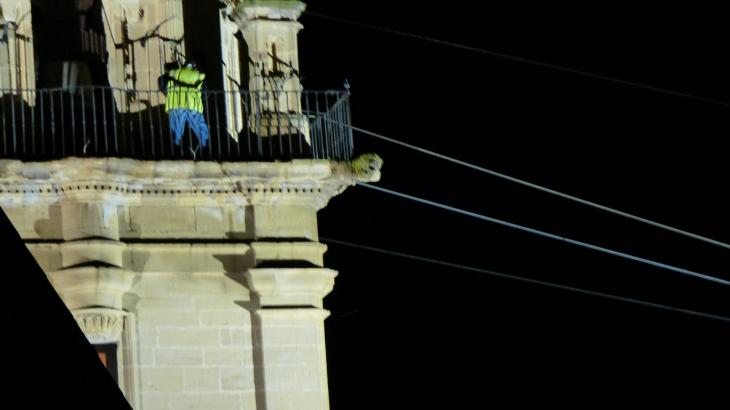Anoche bastante antes de las 00 horas, ya estaban por la torre los operarios del Ayuntamiento preparados para recibir al catxi, que iba a tardar poco en subir a la torre de donde bajo el día 26, ese es un ritual que todos los años se mantiene para que todo salga a la perfección, que no tenga que estar esperando por que se engancha en algún lado o cualquier otra cosa que pueda ocurrir en el camino, isa que allí arriba estamos viendo a uno de los que había para tal menester y por dentro de la torre...