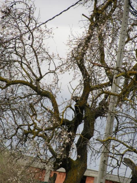 Este es un almendro muy viejo que hay en el camino viejo de Logroño, es tan viejo que hasta las flores salen deformadas, pero como se aprecia en la foto no salen flores en el contorno del árbol sino en la mitad, como sabéis aun no es tiempo de que florezcan los arboles, pero con estas temperaturas se ha adelantado la floración y así es como están los almendros, los almendros que están bien de salud están preciosos, pero este pobre esta así de viejo que es y creo que la mitad del árbol esta enfermo,