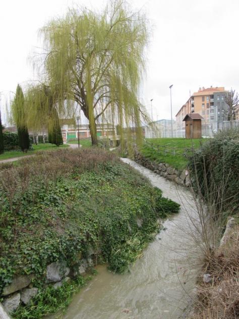 El río por el parque baja muy crecido,