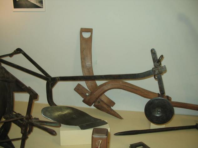 En esta foto podemos ver a la izquierda el braban que ese instrumento servía para hacer las grandes labores en las fincas sobre todo cuando iban a labrar para preparar tierra para siembra, como ese instrumento cuando estaba clavado en la tierra hacia mucha fuerza solo una caballería no podía hacer la labor que se le requería a ese aparato, y ese es el motivo de que seria tirado por dos caballos. En frente tenemos el quirpi que es un aparato que sirve para estrechar el trozo que se deja en el tronco...